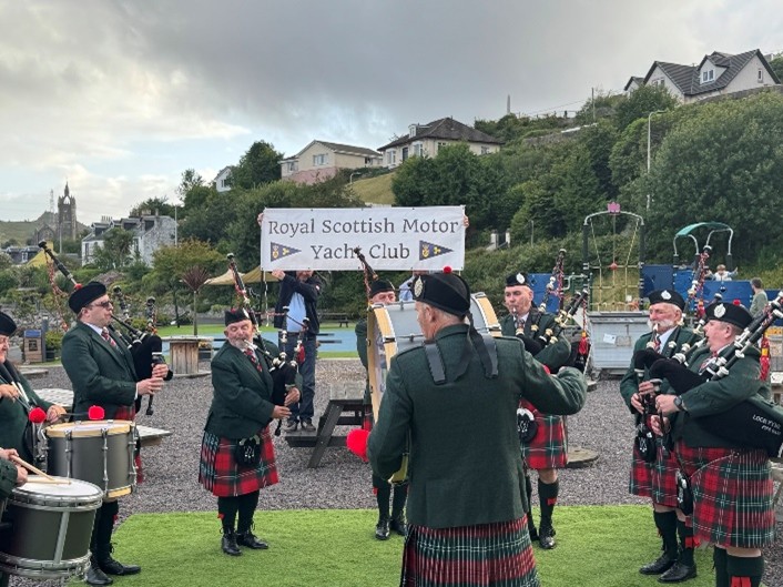 Third muster of the 2025 season was held at Tarbert with 14 boats attending and reasonable weather for the whole weekend. Boats arrived at various times on the Thursday onwards. On Friday evening we had food from The Silver Darlings and Commodore’s drinks in the marquee. Saturday morning was our own time to have wander around the village. Later in the day we had the fancy dress afternoon tea in the marquee, we also had a special surprise visit from The Tarbert Pipe Band who played various tunes while members made donations to the band. Later some members moved in full fancy dress on to the Cornerhouse for a few refreshments.